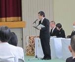 学校長より160名の新入生が入学許可を受けました。「今の神聖な気持ちを忘れず3年間を送ってほしい。グローバル化が進む新しく厳しい時代を生き抜く上で、探究心を持ち自ら学ぶ姿勢や、自分なりの問いを立てる力が必要となってくる。伝統ある羽咋高校で伸び伸びと学んでほしい。」と学校長より式辞がありました。