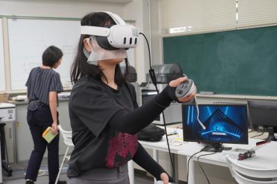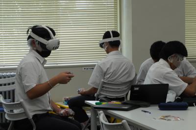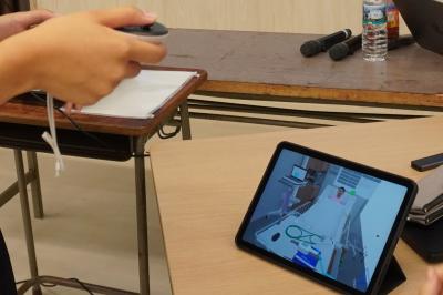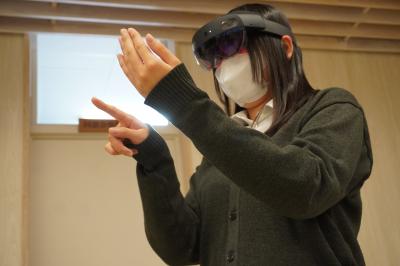 VRゴーグル・MRゴーグルを着用し、病院内の仮想現実を映し出し患者さんの体温計測などの看護を体験。