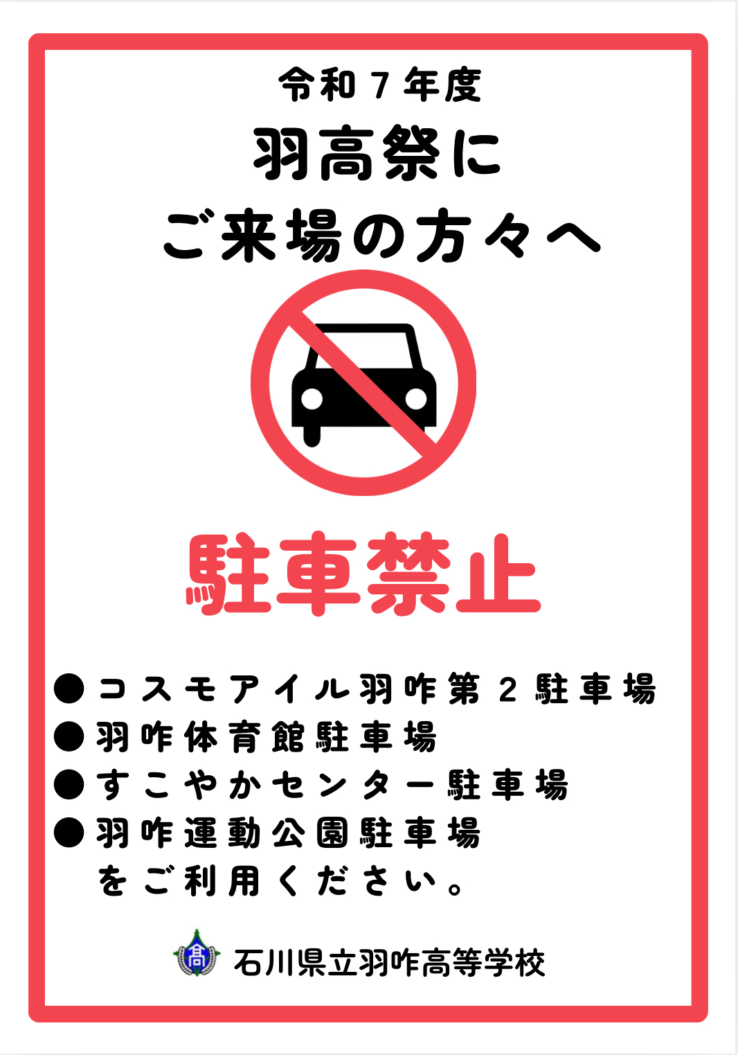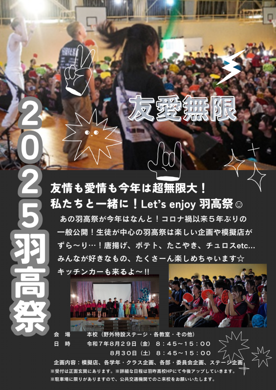 今年度の羽高祭は一般開放いたします。