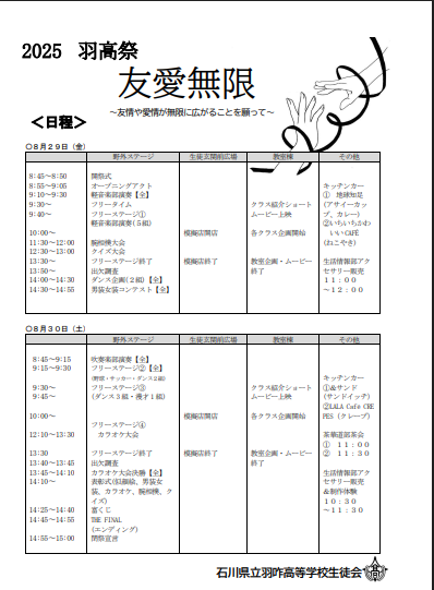 ▶ 2025.羽高祭のタイムスケジュールはこちらをクリック(※時間はあくまで目安です)