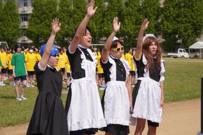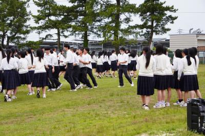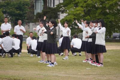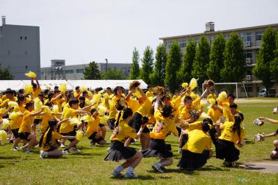 6月9日(月)放課後、来週18日に開催される体育祭のメインイベントの1つである、学年混合クラス対抗応援合戦の練習が始まりました。
