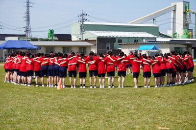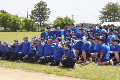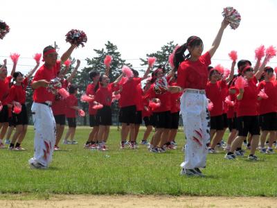 応援合戦は赤色ユニフォームの3組連合の優勝。