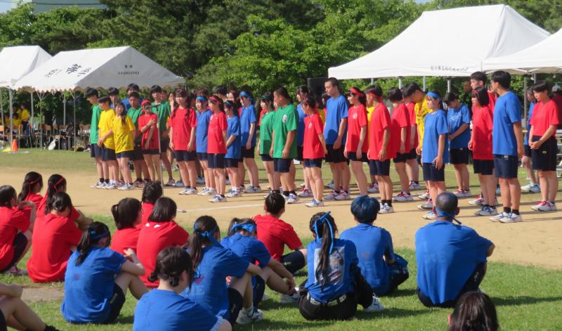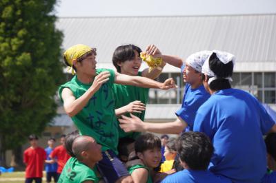 今年度の体育祭は緑色ユニフォームの2組連合が総合優勝。