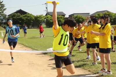 ガッツポーズでゴールテープを切ったアンカーは4組連合長!