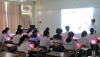 3年生による学校説明の様子 理科の体験授業 生徒が補助を務める数学の授業