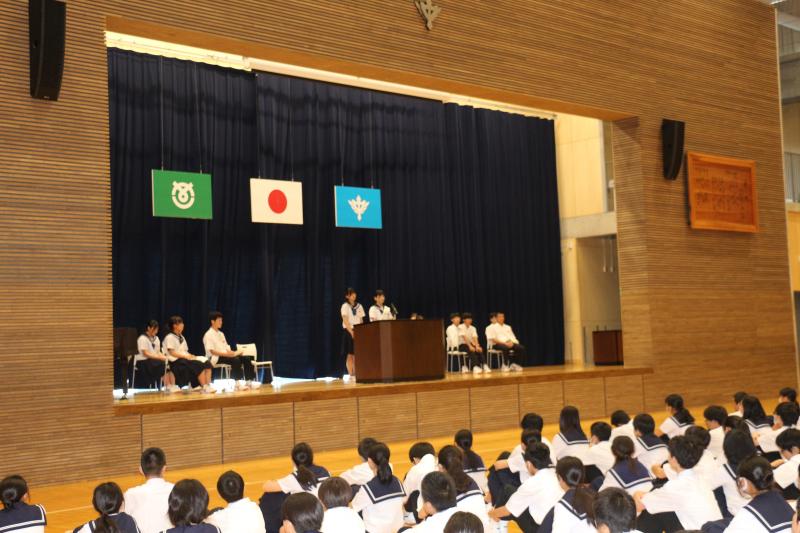 晴天に恵まれた秋空の下、各学年で分担をして清掃活動に取り組みました。多量のプラスチックごみやペットボトル、不燃物の空きびんや空き缶を分別しながら回収することができました。残暑の一日となりましたが、生徒たちは、爽やかな汗を流しながら、仲間との楽しい時間を共有していました。