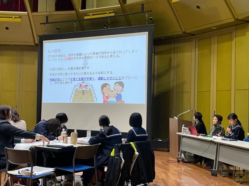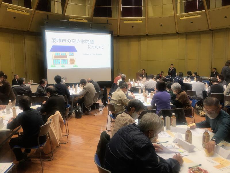 小倉さんは、総合的な学習の時間で「空き家問題について」調査し、自分なりに考察した結果を参加した住民の方々に堂々と発表していました。中学生でありながらも、エビデンスに基づく見事な発表により、参加者からは口々に驚嘆の声が上がっていました。