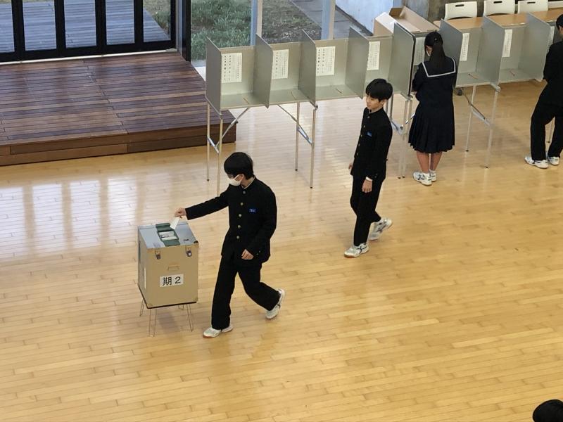 12日の午後、3年生3クラスを対象にした、選挙出前講座が行われました。公民の学習をしている3年生にとって、模擬的な選挙を体験することで学習を深める貴重な機会となりました。