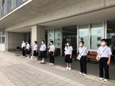 15日の6限後、後期生徒会役員選挙の演説会が教室と会場をオンラインでつなぎ行われました。2年生8名の立候補者とその応援演説の生徒たちは、明日の羽咋中学校の未来を描き、学校をよりよくするために実行したいことを自分の言葉で堂々と述べていました。教室の生徒たちは、立候補者たちの主張をしっかりと聞いた後、各教室で投票を行いました。