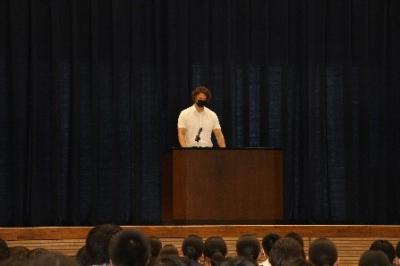 山崎先生のお話を通して、生徒たちは、SNSの使用時間と生活リズムについて自分自身を振り返り、ネット上の誹謗中傷を行わないなどの基本的な「情報リテラシー」についての重要性を再認識することができました。
