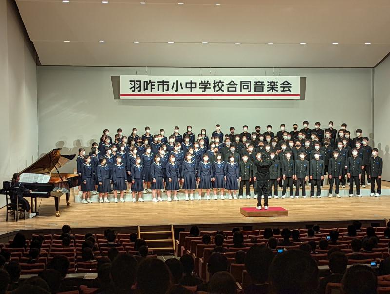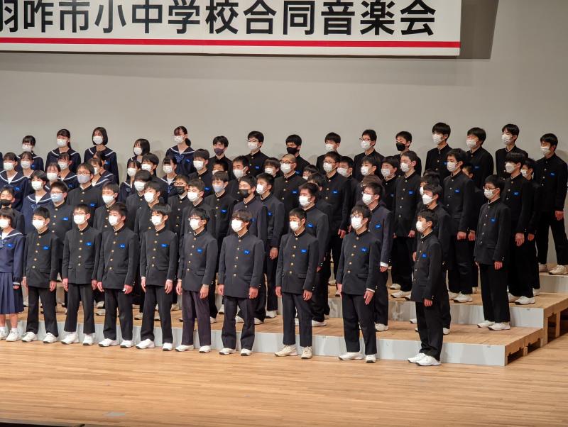 11日(金)、第61回羽咋市小中合同音楽会がコスモアイル羽咋の大ホールを会場にして開催され、本校からは2年生が参加しました。
