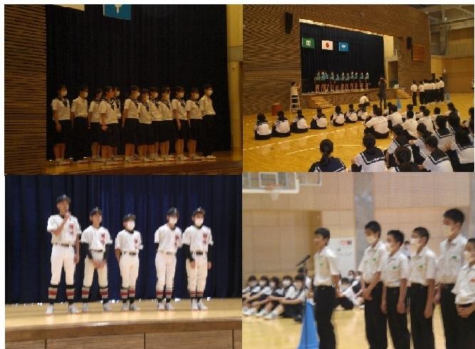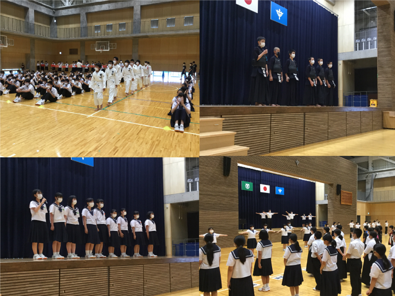 7/8(水)本校体育館において部活動引退式を行いました。全部活動、1・2年生の代表者が3年生への感謝や今後の意気込みを述べた後、それに応える形で3年の代表者が後輩たちや周囲の人々へのメッセージを述べました。本校初の取組でしたが、閉式後の生徒の姿からは、部活動の意義を考えさせられました。