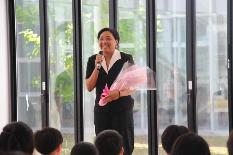 くみこ先生は、令和3年度の途中から約4年近くの間、ALTとして英語を教えてくださいました。明るく、元気な人柄で、たくさんの元気をもらいました。この7月から、結婚を機に、滋賀県に行かれることになりました。
