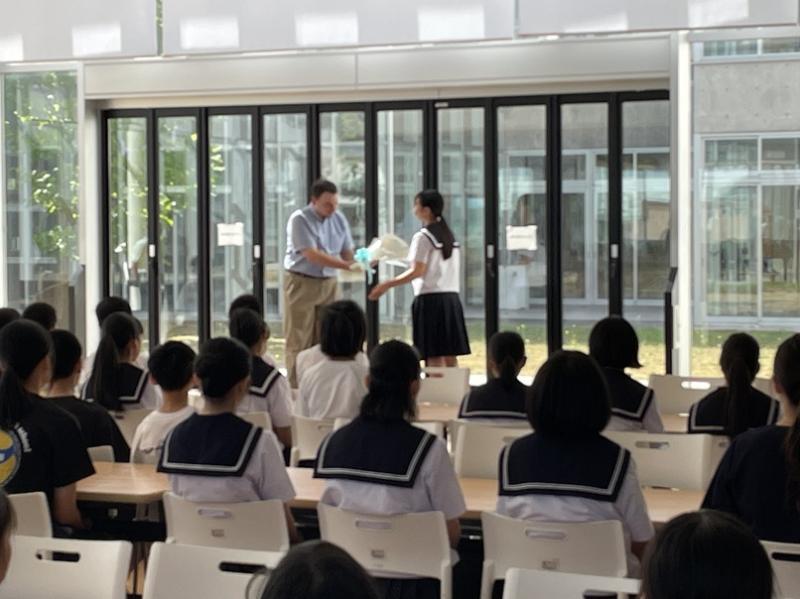 7月18日(金)の終業式の日に、ヘンダーソン・くみこ先生と28日(月)、ギンゲル・リアム先生とのお別れ式を行いました。