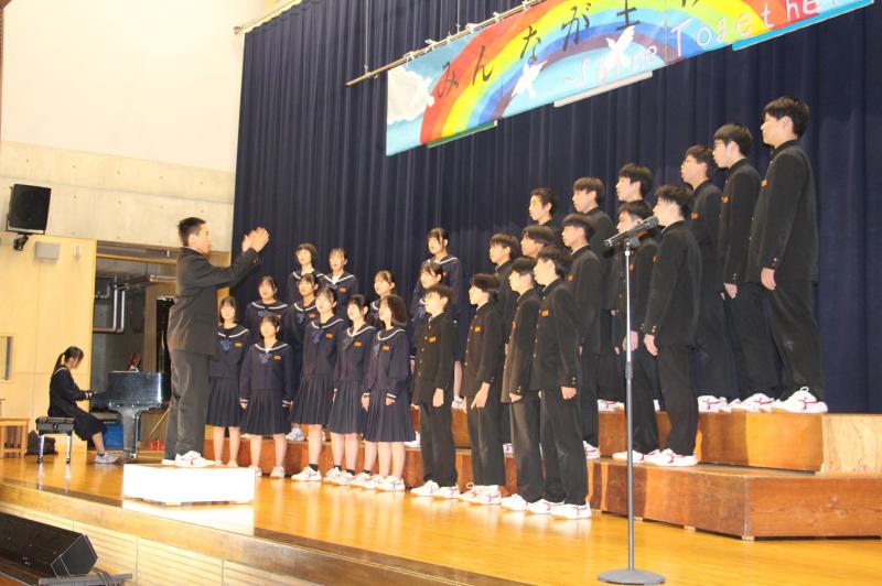 1日目の文化祭では、合唱コンクール、総合的な学習の時間の発表、ステージ発表等がありました。中でも合唱コンクールは、これまで仲間と練習をし、本番は一番の歌声で歌ったことは、何物にも代えられない貴重な時間でした。クラスの名誉を懸けて競い合う中で、仲間とのかけがえのない時間が過ぎていったように思います。