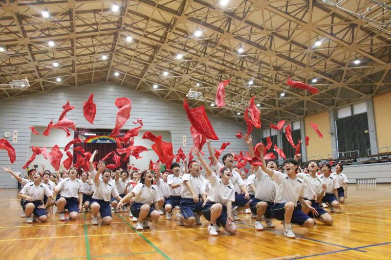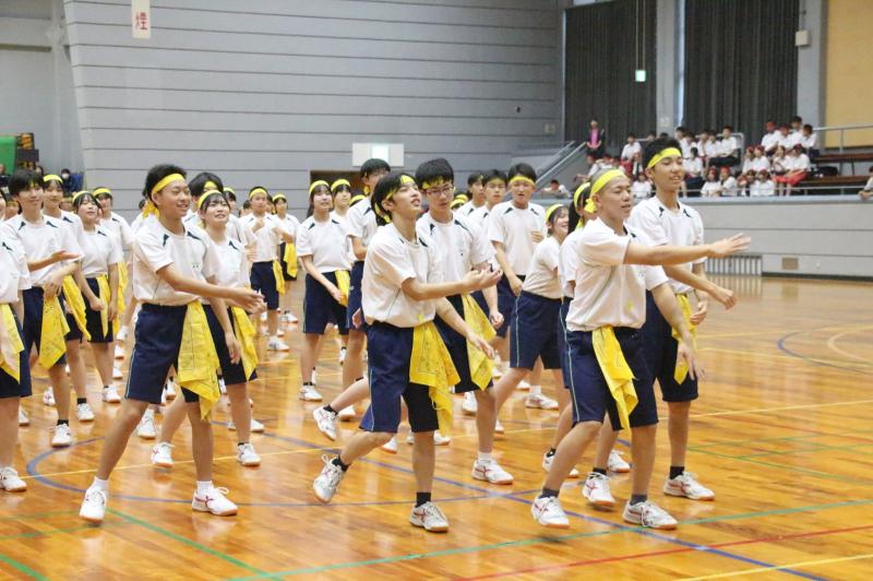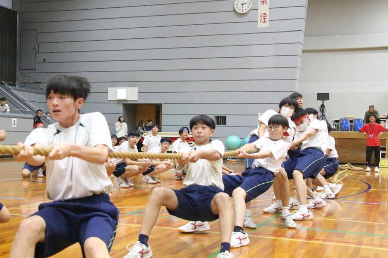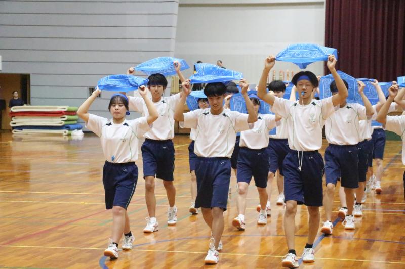 2日目の体育祭は、羽咋体育館に場所を移して、各種競技や集団演技を行いました。前日の文化祭と葉違い、懸命に競技する選手やそれを応援をする仲間が学年の枠を超えた縦割り集団として、一つになった姿を見ることができました。
