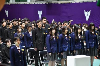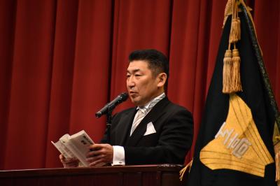 皆さんは、「自律と創造」が建学の精神の本校において、勉強、部活動、学校行事、資格取得など多くの活動に挑戦し、その経験から立派な若者へと成長してくれました。今日の、この人生の節目に当たり、父へ、母へ、家族へ、お世話になった方へ、感謝の気持ちを伝えてください。