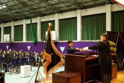 「式辞  能登半島地震を経験した復興途中の私達にも、春の訪れが感じられ、なごり雪が降る中、第61回卒業証書授与式を挙行できますことは、この上のない喜びであります。ご来賓の羽咋市長 岸 博一 様、PTA会長 大塚 哲也 様、同窓会会長 河崎 祐彦 様、そして多くのご来賓、保護者の皆様にはご臨席をいただき厚く御礼申し上げます。