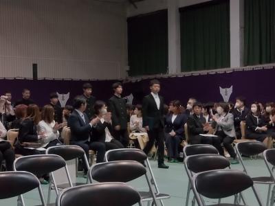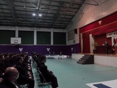 最後に、わが母校、羽咋工業高校で自分が成長した感じたら、あの校門を出るときに、誰が見ようが構わず、振り向いてこの学び舎に「有り難うございました」と礼をしていってください。胸を張って、社会に一歩足を踏みだしなさい。