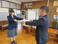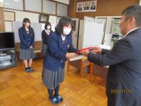 11月13日(水)七尾税務署長の高畑さんが来校され、「税に関する高校生の作文」へ本校が積極的な応募したことに対し、感謝状を授与されました。