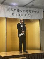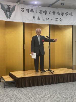 乾杯は関東総支部土田清作さん(1回機械)によっておこなわれ、非常に和やかな懇親会がスタートしました。懇親会では来賓の越野兵司(旧職員3回建築科担任)さんが、当時の学校の様子や生徒の様子など羽咋工業高校の楽しい思い出話をしていただきました。その後は多くの方から近況報告があり、非常に楽しく、思い出話に花が咲く会となりました。