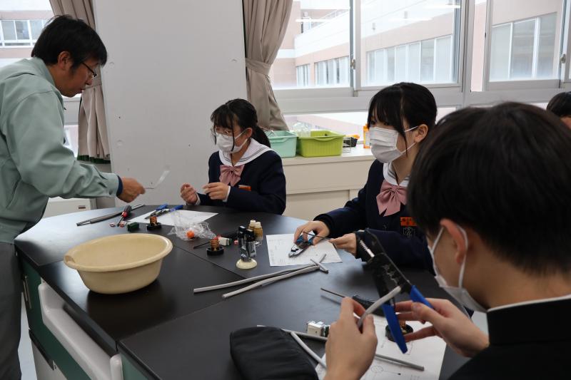 11月21日(木)に宝達中学校で出前授業を行いました。電気科は電気工事の体験を行いました。ランプを点灯させる回路を工事して、実際に光らせました。