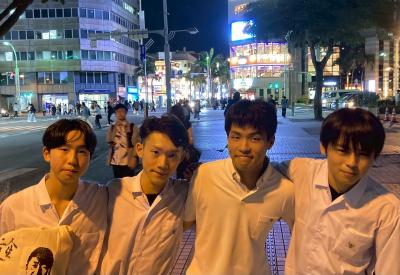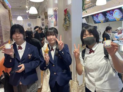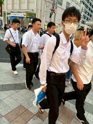 にぎやかな街並みの中で、生徒たちの笑顔があふれています