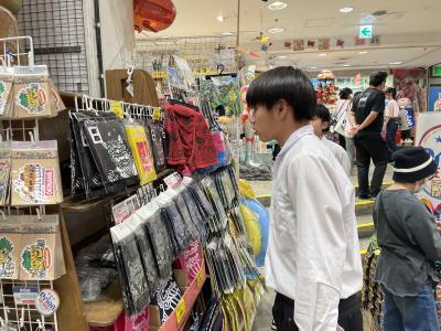 恐竜の被り物や沖縄ならではのお菓子、シャボン玉やポップコーンなど、気になるアイテムがたくさん並んでいて、生徒たちも楽しそうに品定めしていました