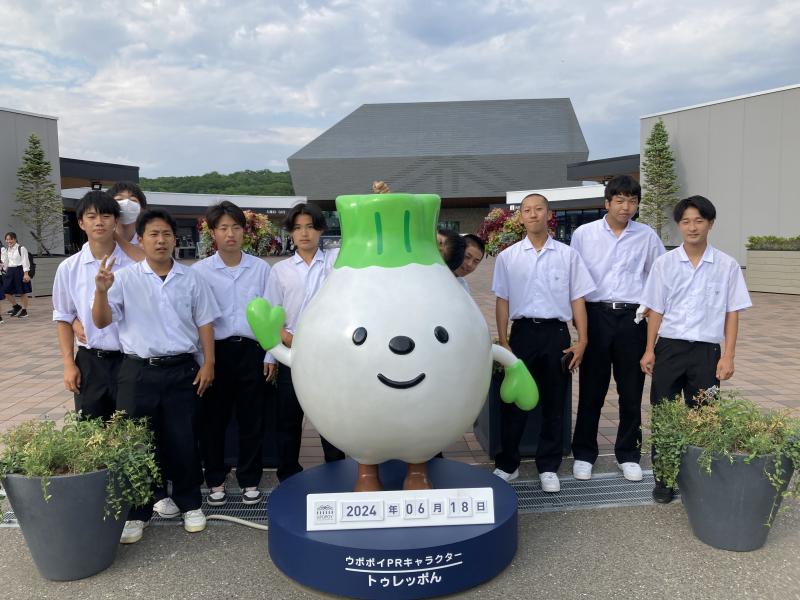 JR羽咋駅玄関看板 お披露目式 本校デザインコース生徒作品