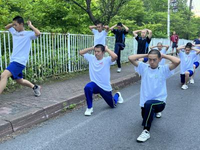 修学旅行2日目。早朝から羽工恒例の修学旅行朝練がありました!