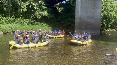 修学旅行2日目の午後はニセコでラフティングを体験しました。