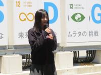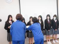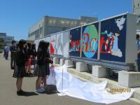 お披露目会では、生徒たちにお礼の品が贈呈され、除幕式の後、加藤さんが作品のコンセプトについて発表しました。
