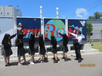 ハクイ村田製作所で蓄電池ラッピングの完成お披露目会があり、建設・デザイン科デザインコースの3年生が出席しました。