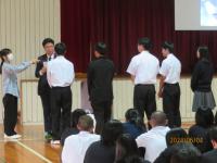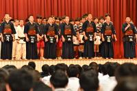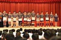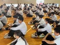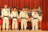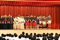 壮行式が行われ、北信越高等学校体育大会に出場する卓球部、ラグビーフットボール部、ヨット部、柔道部、剣道部の選手たちに全校生徒・職員でエールを送りました。