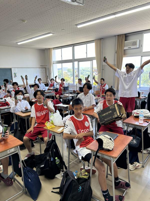 先月モンスターエナジージャパン様の企画に応募したところなんと見事に当たり、全校生徒にエナジードリンクをいただきました!!