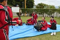 全校生徒および教職員で地震とそれに起因する火災発生を想定し、被害を最小限にとどめるための訓練を実施しました。防災意識の徹底と災害時の人的・物的被害の軽減を期することを目的としています。雨天のため、体育館に避難しました。