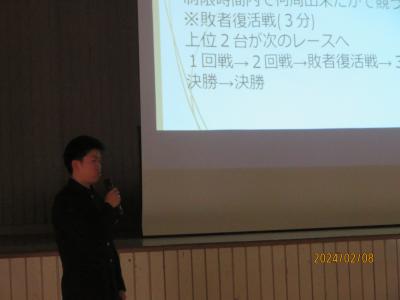 震災のために急きょ中止した「課題研究発表会」を、できる範囲で実施できないものかと苦心した結果、コスモアイル羽咋から本校第一体育館へ会場を移し、聴衆も校内の関係者だけで、いろんな不備が重なる中、なんとか開催しました。