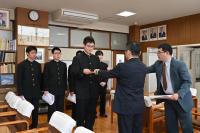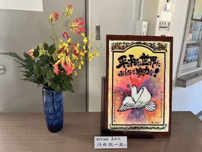 先生は、芸術家として著名であり多くのコンクールで賞をとられています。今回は、羽咋工業高校と羽咋高校の生徒が共に学んでいるこの環境で、何か震災に対して出来ることは無いかを苦心し、この絵を寄贈し、子供達に少しでも元気でいてほしい願いを込めた話をされていました。