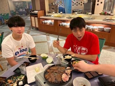 焼きたてのお肉をほおばりながら、「今日一日すごかったね!」と楽しそうに話す姿が印象的です