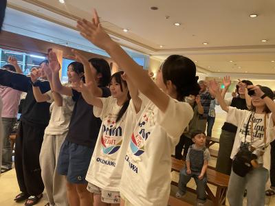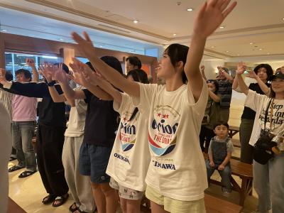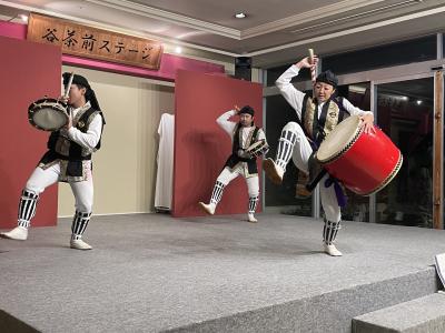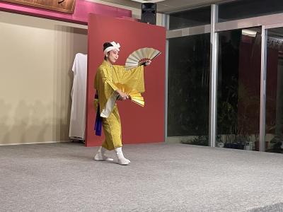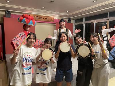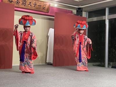 夕食の後は、ステージで沖縄伝統のエイサーと琉球舞踊の披露がありました。