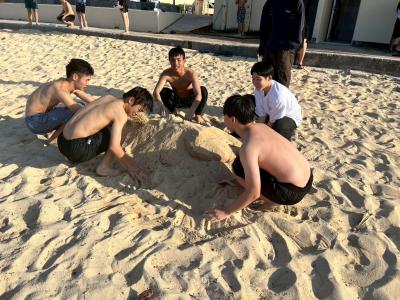 6:00 あったかいけど冬。まだ空がうっすらと暗い中、希望者による朝練を行いました。