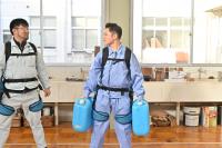 生徒たちは、ポリタンク(1個15kg)を両手に持ち上げたり、友人を抱え上げたりして、アシスト効果を実感していました。