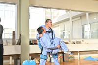 1年生は、フルハーネスとパワーアシストスーツの着用体験を行いました。