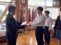 後期生徒会役員に立候補し、信任された7名が今後の抱負を校長先生に伝えました。