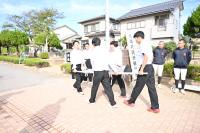 午前9時00分に羽咋市千里浜海岸沖を震源とするマグニチュード9.0、震度7の地震が発生し、津波警報が発令されたという想定のもと、地域と連携して避難訓練を実施しました。釜屋町・大川町・柳田町の住民の方々約300名を、避難場所に指定されている本校へ生徒たちが誘導しました。また、生徒が負傷者役の住民の方を車いすや担架で運びました。