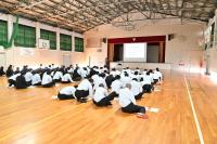 生徒たちはメモを取りながら、真剣に話を聞いていました。今日の講演会で教えていただいたことをインターンシップで実践し、感謝の気持ちをもって仕事の大切さを学んできてください。また、事前に自分なりの目標を設定し、インターンシップ終了後にしっかりと振り返りが行えるようにしましょう。