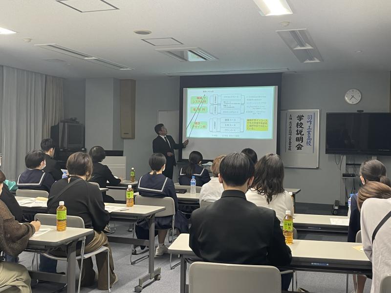 10月18日から25日にかけて、七尾市・かほく市・中能登町・志賀町・羽咋市の5会場において、中学3年生の保護者および生徒の皆様を対象に進路選択の参考にして頂くことを目的に、本校の様々な教育活動を詳しく説明しました。各会場、多数の方に参加して頂きました。