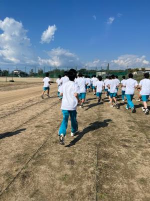 32Hの担任の井上先生や、体育科の西川先生は、ほとんど毎時間生徒の指導で5キロ走ってくれます。今日は校長も23Hと一緒に走ってくれました。