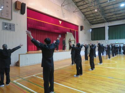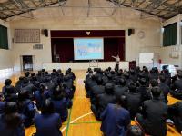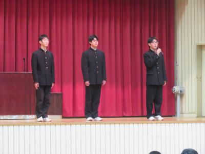 12月3日(水)に壮行式が行われました。ジャパンマイコンカーラリー2026全国大会に出場するコンピューター部の31H吉野さん、嶋田さん、片岸さんに全校生徒・職員でエールを送りました。