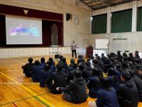 11月12日(水)本校視聴覚室において、標記の説明をお聞きしました。生徒は2年生機械システム科の生徒たちです。